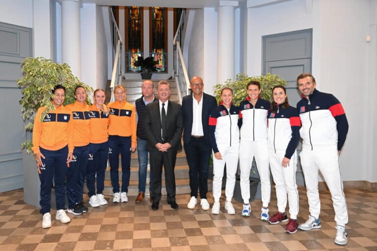 Les joueuses françaises et néerlandaises ont été présentées à la Mairie du Portel dans la soirée, avant de continuer leur préparation sur le court installé dans l’enceinte du Chaudron, habituellement dédié au Basket et à la Pro A avec l’équipe du Portel.